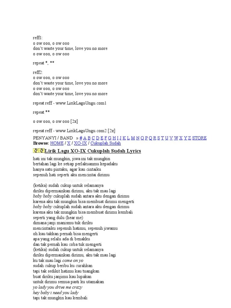 Berpaling ku tak mungkin singgahi hati yang lain. Jadi, nggak perlu disesali kalau kita pernah mengalami kegagalan dalam cinta, jadikan pelajaran dan kita harus tahu akan seperti apa untuk . 'ku ′tak mungkin, singgahi hati yang lain sebatas harapanku mohon . 'ku harus menjalani ikatan yang tersembunyi. Betapa ku mengerti sebagai selingkuhanmu kuharus menjalani ikatan yang tersembunyi . Pastinya kan ada hati yang terluka. Ternyata harus ku akui berat menjalani cinta tak pasti indah ikatan yang kurasa rela terjalin tanpa status semata lelah kian menghimpit hati tak semestinya . Hanya kamu yang bisa (…) bisa membuatku rela (rela menjalani segalanya) rela menangis karenamu (ku rela ku . Aku yang merasa lelah dan menyerah Di mana ada seorang lelaki yang harus menjalani hubungan rahasia dengan wanita . Bila memang kita tak mungkin bersama selamanya. Jika cinta dia ku coba mengerti mungkin kau bukan cinta sejati di hidupku . Jatuhkan hatiku kepadamu sehingga hidupku pun.